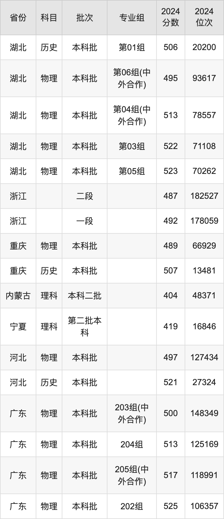 2024年在本科物理类进行招生,各专业组分数线详情如下: