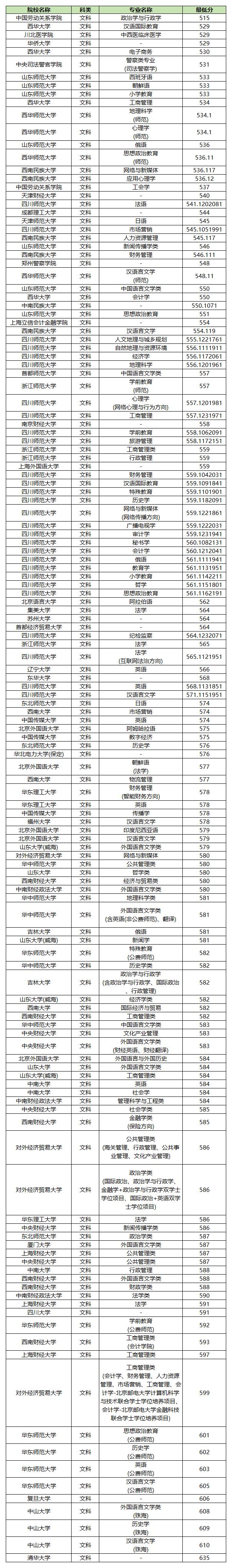 如果文科生分数在550分以下,建议报考:西华大学、西华师范大学、西南民族大学、川北医学院、成都理工大学。