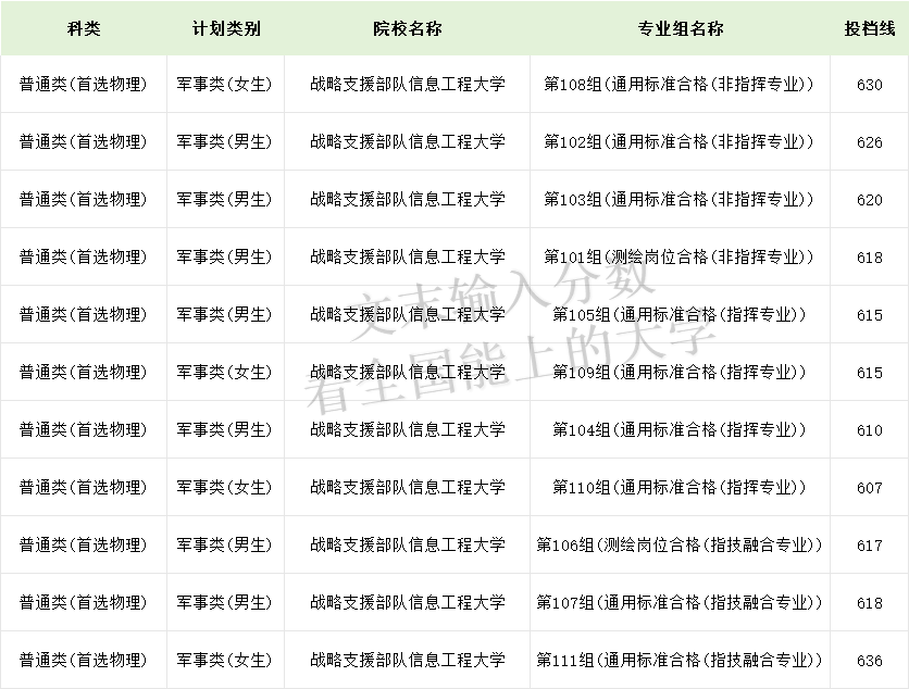 各位考生和家长可以在文末输入分数,查看2024年战略支援部队信息工程大学在其他省份的录取最低分。
